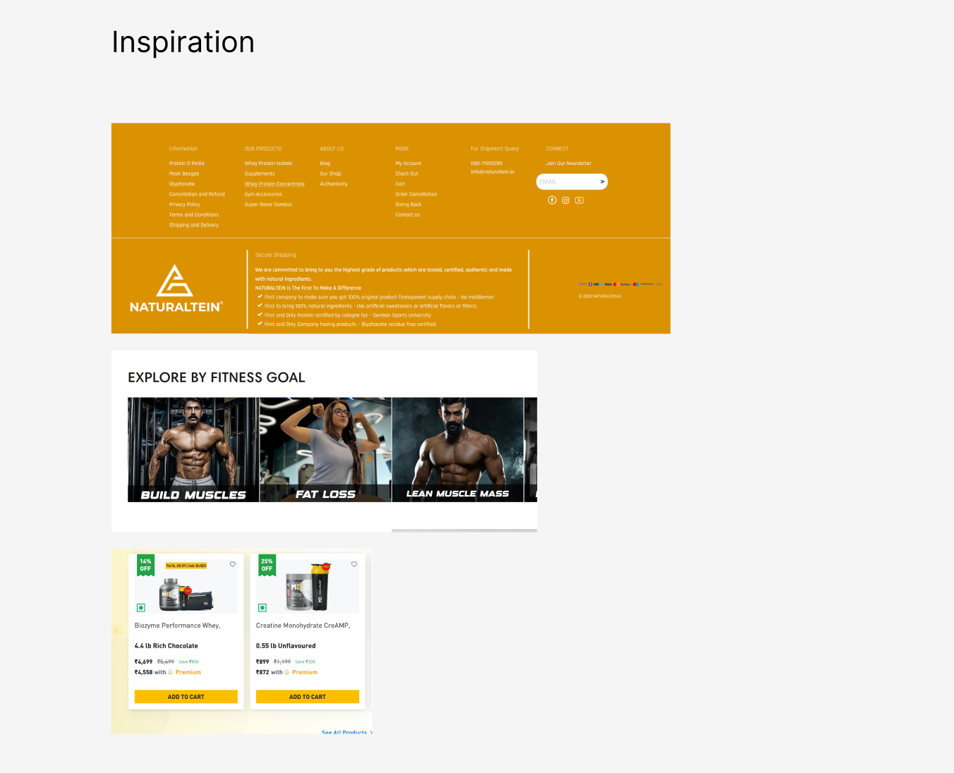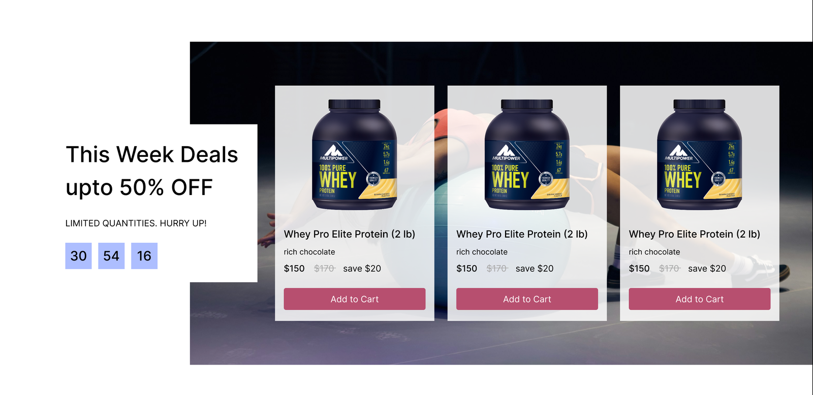 A nutrition landing page, selling gym nutrition products.